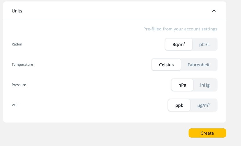 Select preferred units and click "Create".