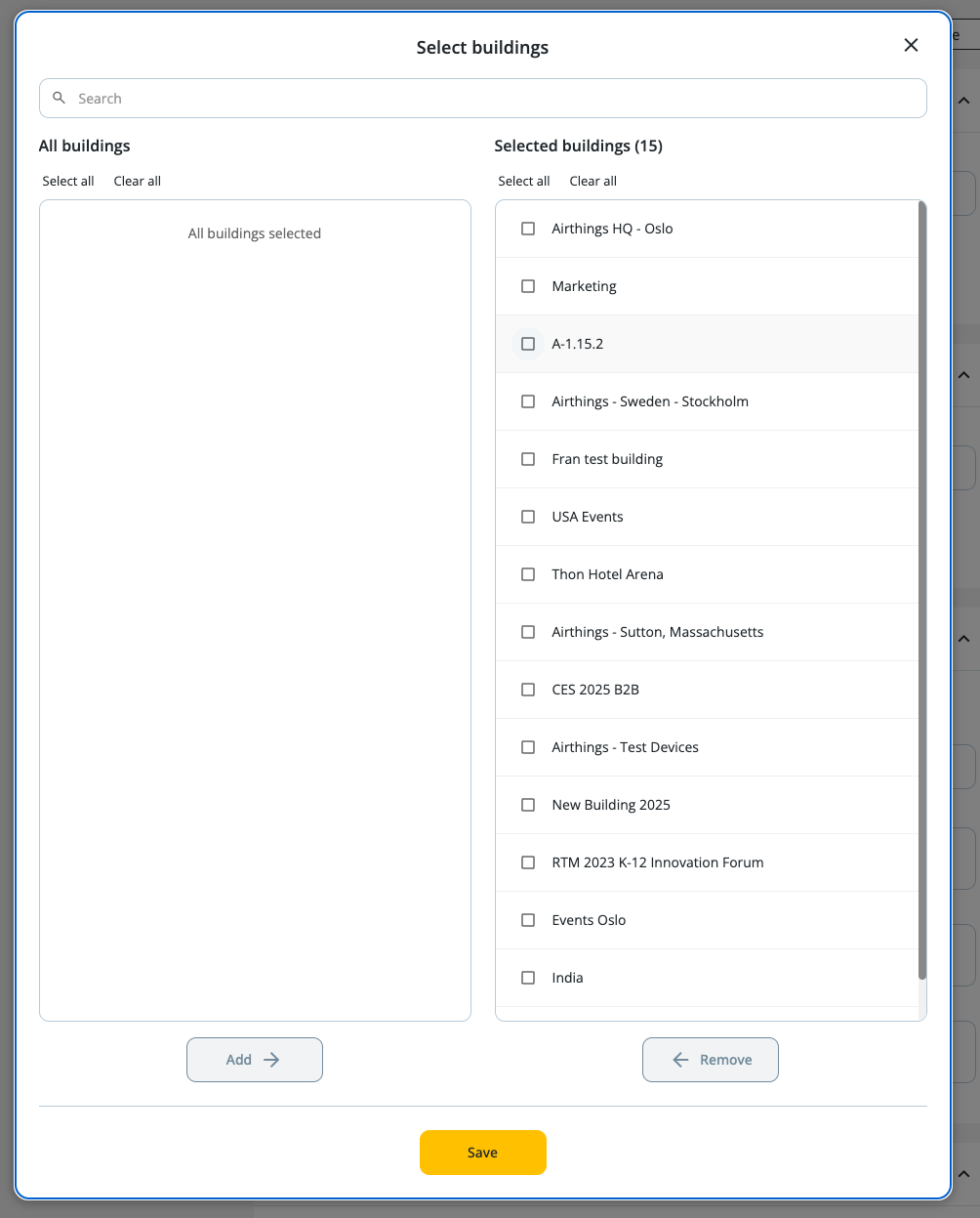 All buildings are selected by default or select buildings.